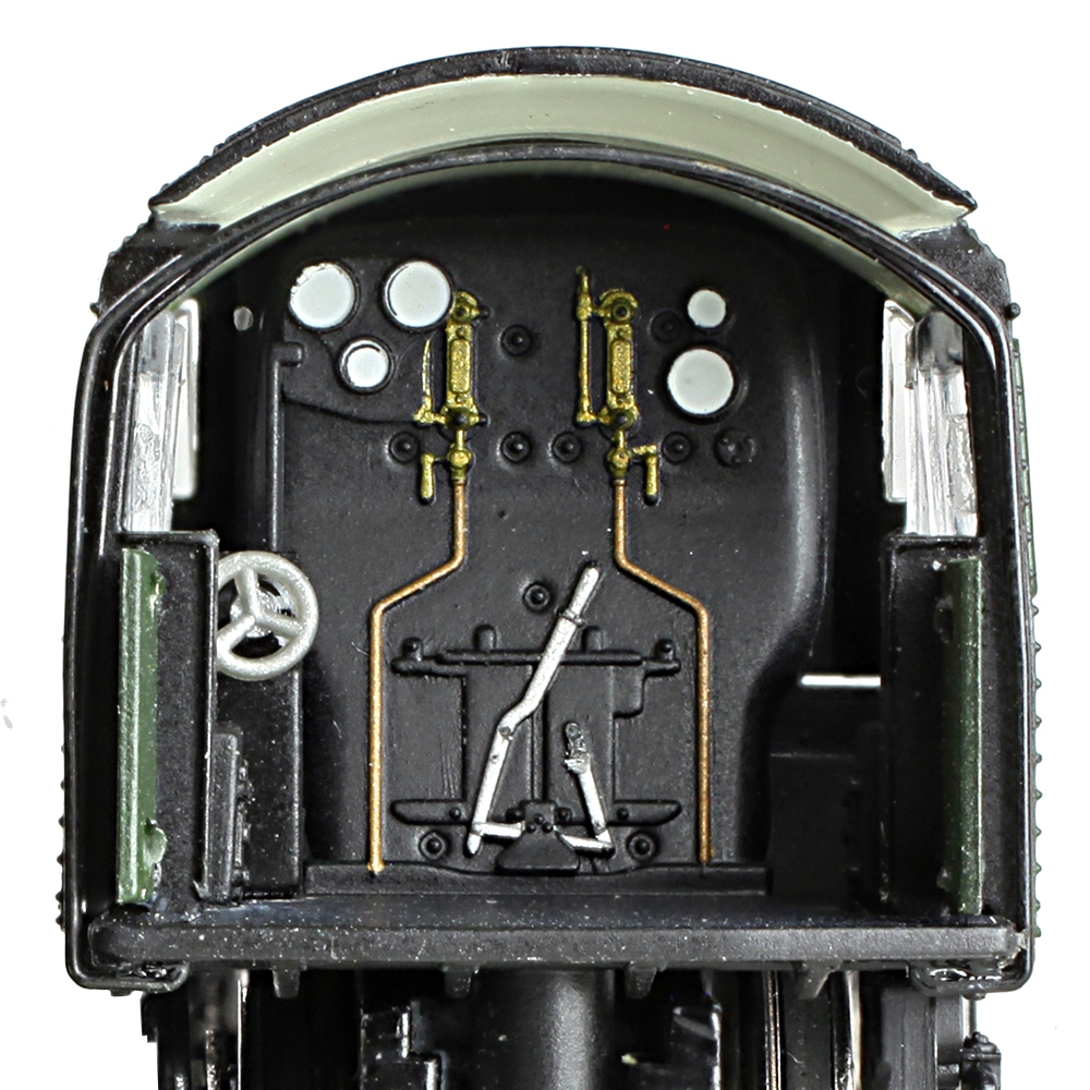 The Graham Farish model brings all the power and presence of the prototype to N scale and this masterpiece in miniature certainly packs a punch when it comes to the detail, with separate metal handrails found throughout the locomotive and tender, brass chimney and safety valves and separate pipework running from below the cab to the injectors on the boiler. Inside the cab, the moulded back head detail has been decorated to pick out the individual gauges and controls, whilst below the running plate, the Walschaerts valve gear is something to behold, especially when the locomotive is in motion.