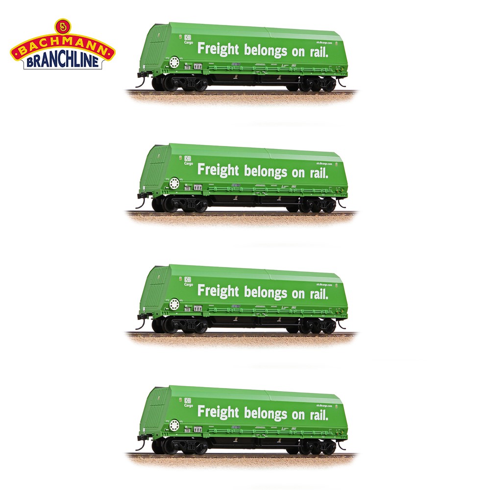 Four of our HRA Bogie Hopper Wagons in DB Cargo Green ‘Freight belongs on rail.’. See 37-865K for full product details.