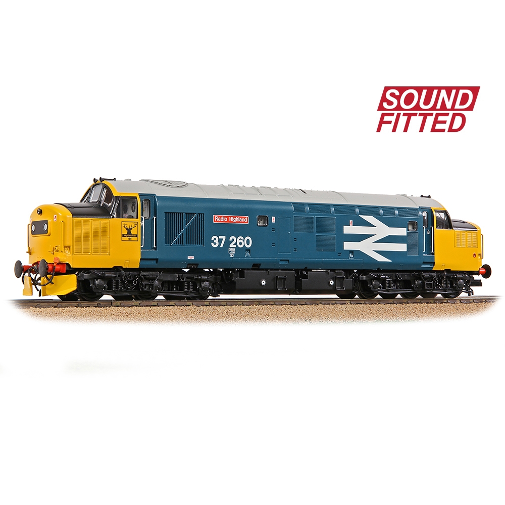 The British Rail Class 37 is a favourite among enthusiasts and modellers alike and, having been a firm fixture in the Bachmann Branchline OO scale range for many years, in 2022 an all-new model of this iconic locomotive was launched. Built to unprecedented levels of accuracy and fidelity, the new Branchline model incorporates the latest technology and shares many common features and specifications with the award winning Bachmann Branchline Class 47. Supplied complete with SOUND FITTED is this model of No. 37260 ‘Radio Highland’ in the adored BR Blue Large Logo livery.