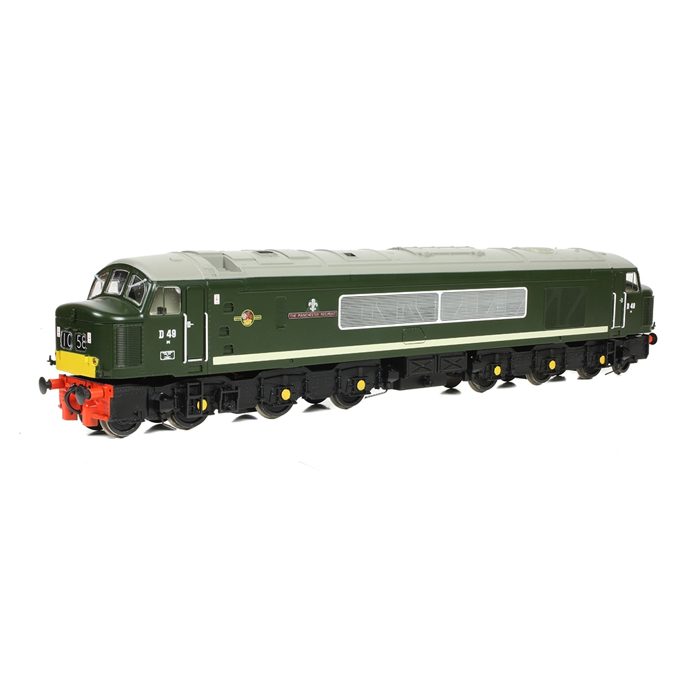 The popular Class 45 Diesel Locomotive returns to the Bachmann Branchline range with this OO scale model depicting No. D49 ‘The Manchester Regiment’. Together with the Class 44s and 46s the classes were commonly known as the ‘Peaks’, because the Class 44s had been named after mountains in England and Wales, however those Class 45s that were named were after British Army Regiments and the Royal Marines. No. D49 is one such named example, being named after the Manchester Regiment of the British Army.