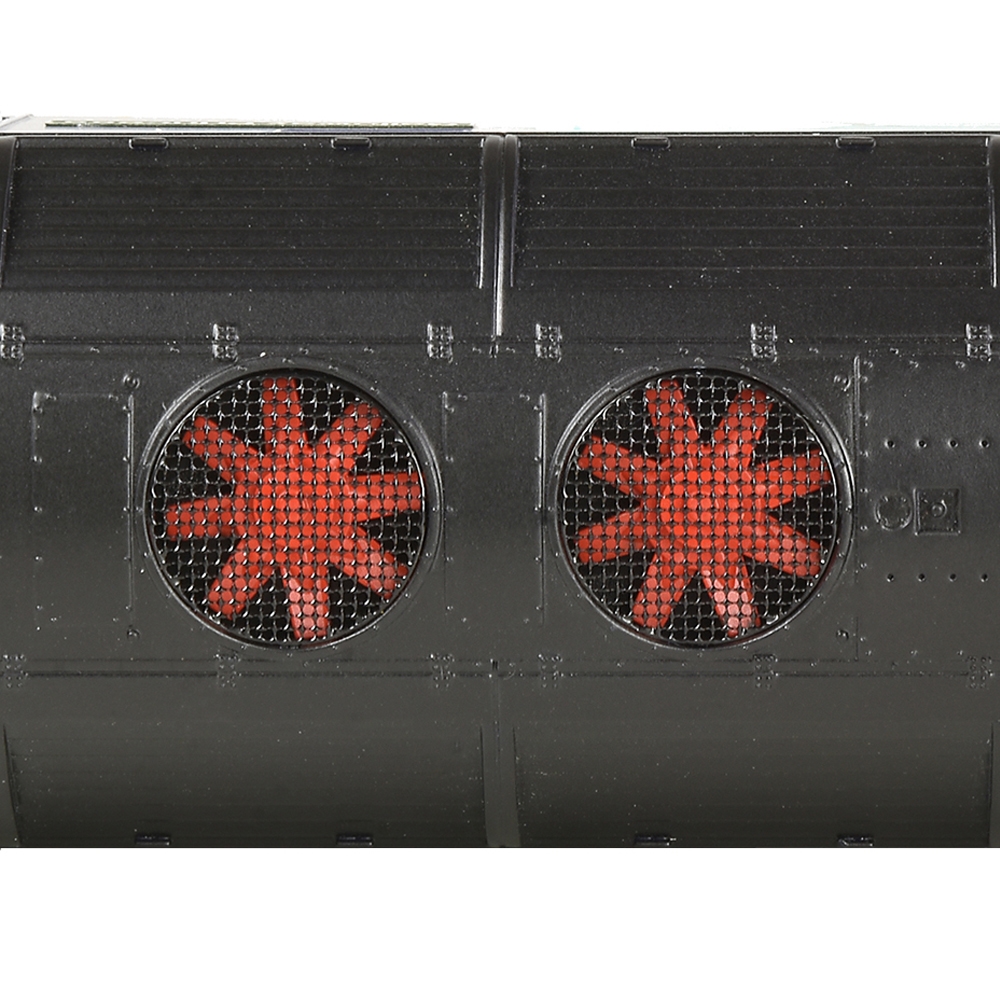 • Rotating radiator fans, driven by an independent motor and gearbox, operated via a DCC function, or randomised when operated as part of the sound project on DCC and Analogue control (SOUND FITTED DELUXE models only)