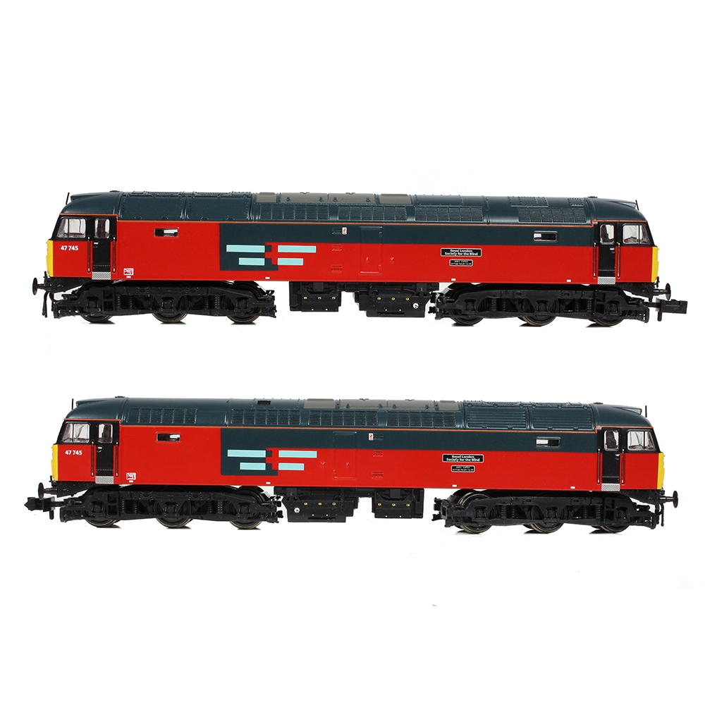 The popular BR Class 47 Diesel Locomotive returns to the Graham Farish range with models of the ‘Crewe-Cut’ locomotives available for the first time thanks to the development of new tooling that further expands the range of Class 47s that can be modelled in N scale. Many Class 47s had the cowling around their bufferbeams removed in later life, changing the appearance of the lower front end and with this work usually being undertaken at Crewe Works, the resultant locomotives were commonly termed ‘Crewe-Cut’ machines. No. 47745 is one such machine, originally built as D1967, in 1983 it was fitted with Electric Train Heating (ETH) and became 47603 and later still was renumbered to 47745 in 1994 following the fitting of extended range fuel tanks and cab-front jumper cables when allocated to Rail Express Systems. Named ‘Royal London Society for the Blind’ in 1994, complete with a set of nameplates in Braille, the locomotive retained its Rail Express Systems livery until it was cut up in 2004.