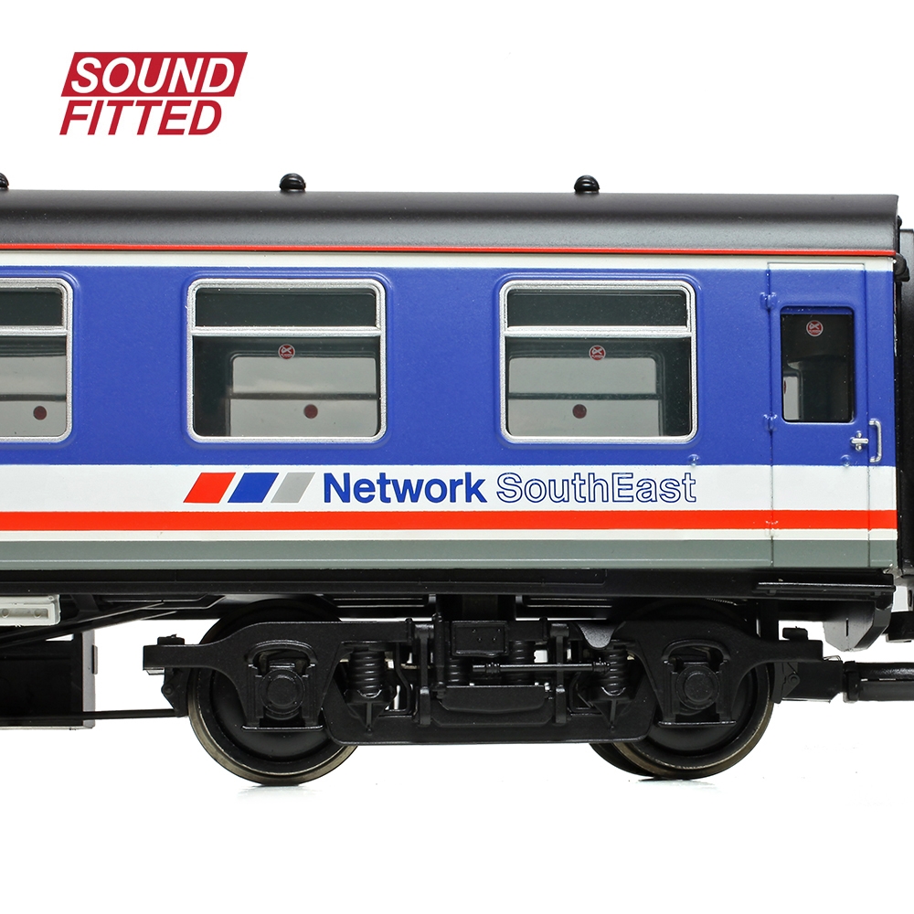 Each of the vehicles that make up this 4-car set is adorned with fine detail from the door handles, hinges and bumpers to the window frames picked out so neatly in silver. Metal wire handrails are fitted at each end of the two DMSO vehicles, and the multiple working equipment, windscreen wipers and roof mounted horns are all fitted separately. Metal handrails also feature aside the guard’s door and metal toilet filler pipes can be found at each end of the TBCK vehicle. Underneath each vehicle the truss frames and brake gear is depicted, along with a full set of auxiliary equipment and boxes. At the driving end of each DMSO Mark 4 Motor Bogies can be found, fitted with their third-rail pickup shoes, whilst throughout the rest of the train Commonwealth Bogies are fitted. Through the tinted windows the tables, chairs and compartments are all the more visible thanks to the interior lighting, whilst the cab is fitted with driver’s seat, control desk and brake wheel.