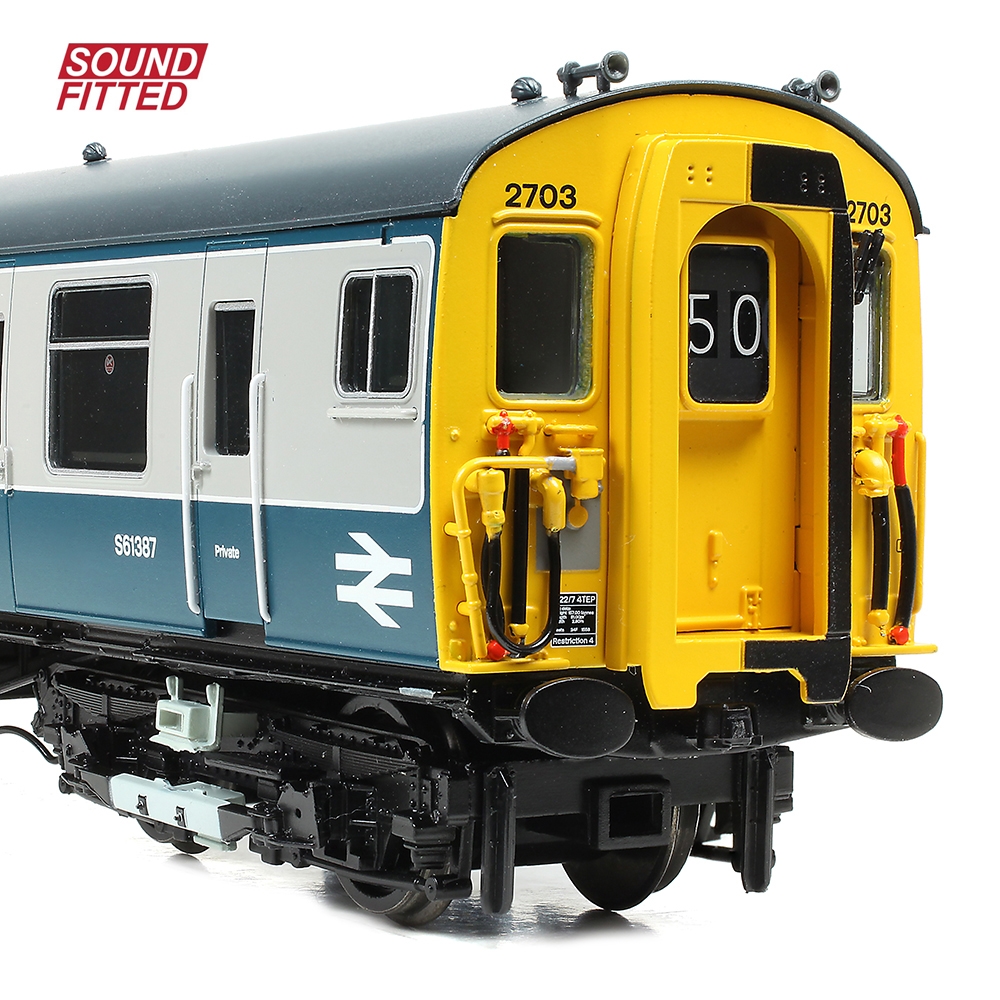 The Bachmann Branchline 4-CEP Electric Multiple Unit (EMU) broke new ground when it was first released and now we’ve created new bodyshells for this award winning model to bring you these new models depicting the refurbished units. With the fitting of hopper ventilator windows and the relocation of the two guard’s compartments from the driving vehicles to a single location in the trailer vehicle, the changes made at refurbishment were drastic and we’ve captured them all in this new Branchline model which depicts 4-TEP No. 2703 in BR Blue & Grey livery.