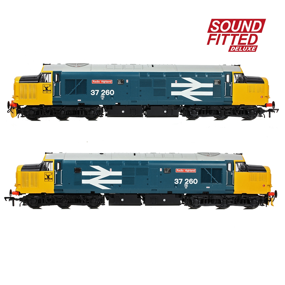 The British Rail Class 37 is a favourite among enthusiasts and modellers alike and, having been a firm fixture in the Bachmann Branchline OO scale range for many years, in 2022 an all-new model of this iconic locomotive was launched. Built to unprecedented levels of accuracy and fidelity, the new Branchline model incorporates the latest technology and shares many common features and specifications with the award winning Bachmann Branchline Class 47. This model of No. 37260 ‘Radio Highland’ carries the beloved BR Blue Large Logo livery comes in SOUND FITTED DELUXE format.