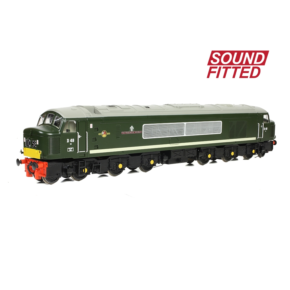 The popular Class 45 Diesel Locomotive returns to the Bachmann Branchline range with this OO scale model depicting No. D49 ‘The Manchester Regiment’. Together with the Class 44s and 46s the classes were commonly known as the ‘Peaks’, because the Class 44s had been named after mountains in England and Wales, however those Class 45s that were named were after British Army Regiments and the Royal Marines. No. D49 is one such named example, being named after the Manchester Regiment of the British Army.